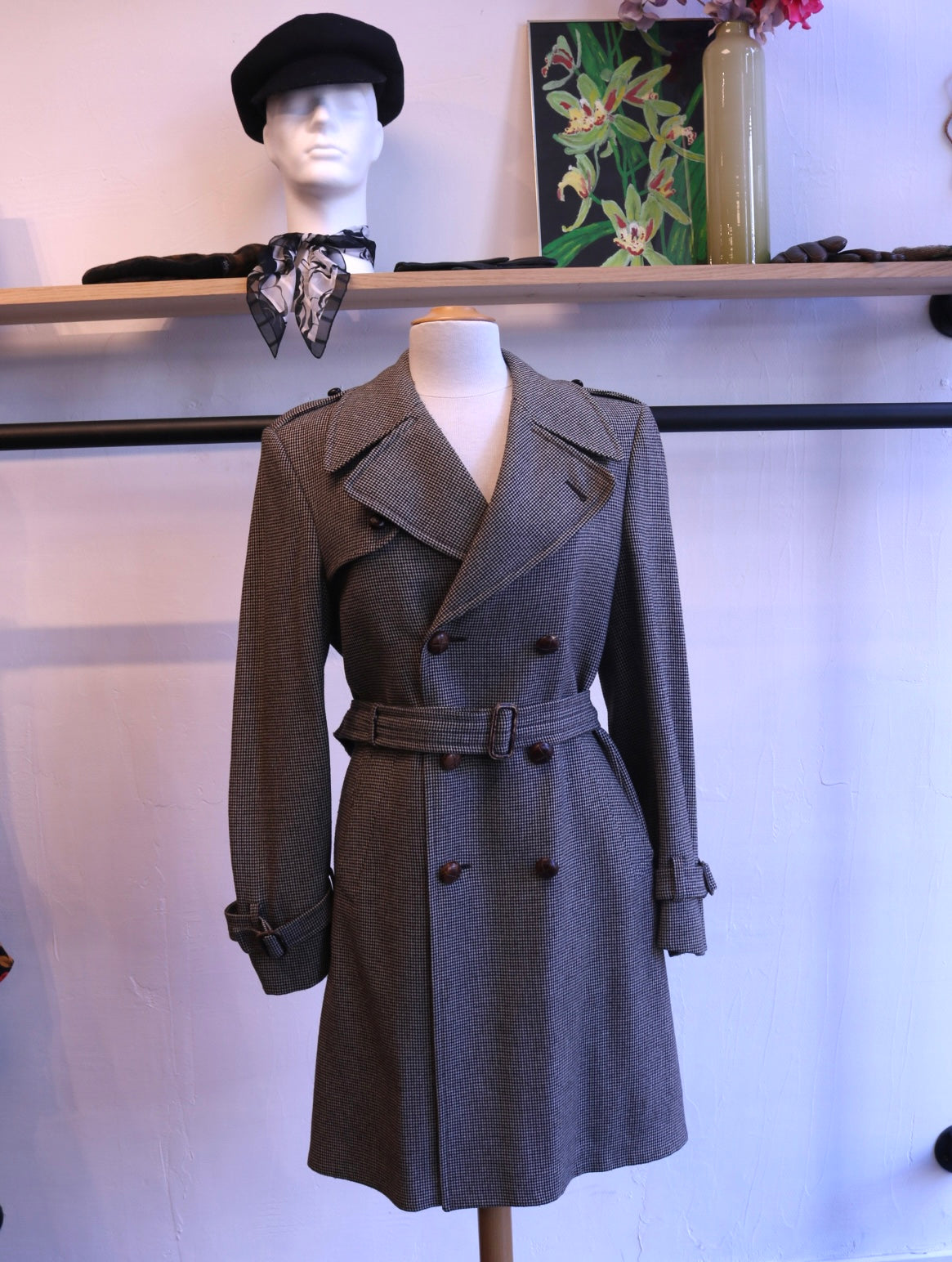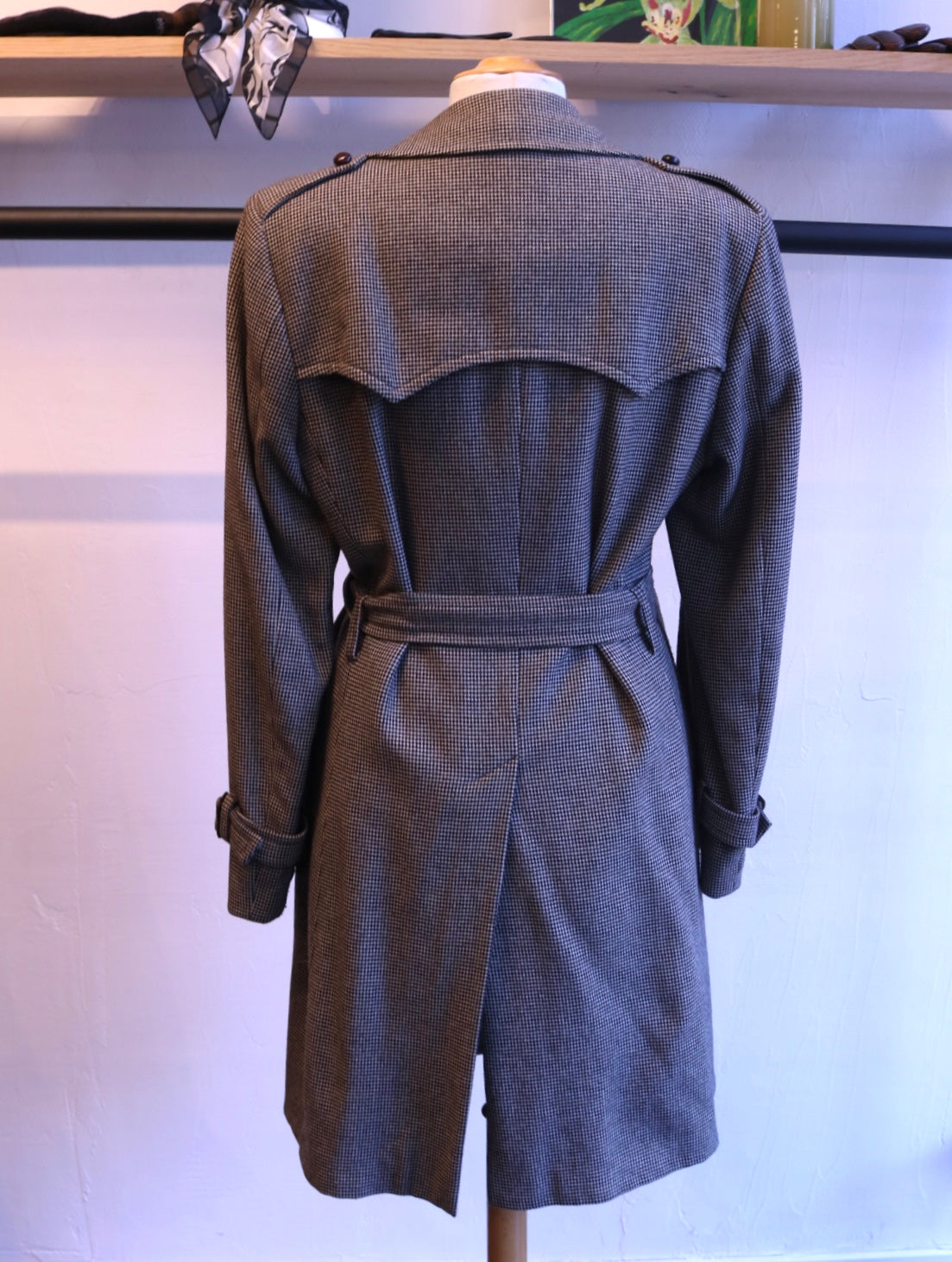 Deze stijlvolle pied de poule jas is een tijdloos item voor je garderobe. Het klassieke zwart-witte motief straalt elegantie uit, terwijl de stevige stof zorgt voor warmte en comfort. Dankzij de riem kun je de jas mooi getailleerd dragen voor een flatterende pasvorm. Zowel de gesp als een van de bovenste knopen hebben wat gebruikssporen, zoals te zien in de afbeeldingen.