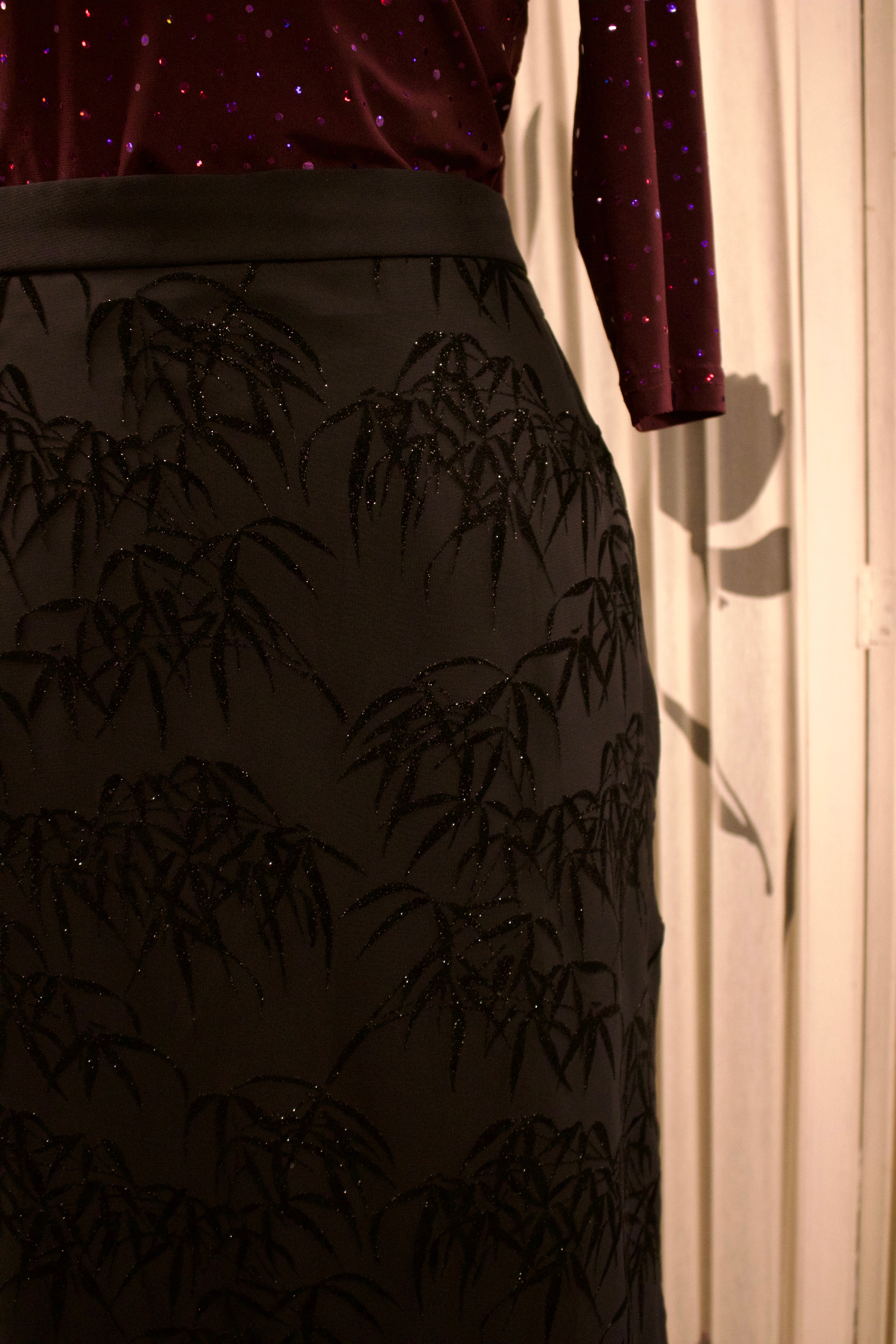Zwarte gevoerde top met kralen en pailletten dessin.